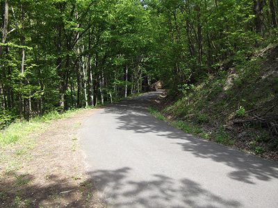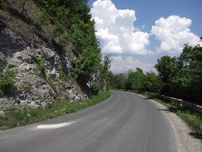 Fokozatosan emelkedik az út. A Szentlászlói út nagy része tökéletes nem rég felújított burkolattal rendelkezik. Elgurulunk